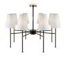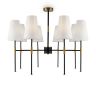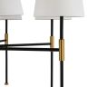 Материал арматуры – металл. Оттенки: хром, комбинация черного и латуни. Абажуры – белая ткань. Акцентный вытянутый силуэт. Источник света – лампа с цоколем E14.