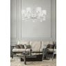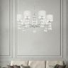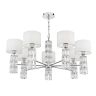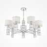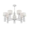 Арматура из металла, цвет – хром. Абажуры из текстиля, нанесенного на ПВХ. Цвет – белый. Декор – массивные кристаллы сложной огранки. Высота подвесных моделей регулируется.