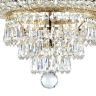 Арматура из металла, цвет – античное золото. Декор металлических элементов – инкрустированный цветочный орнамент. Многоярусные хрустальные подвески скрывают лампы. Часть моделей имеет открытые источники света в виде свечей.