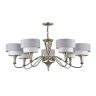Металлическая арматура окрашена в цвет античного серебра. Двойные абажуры из хлопка на ПВХ, комбинация белого и серого цвета. Флористический декор. Высота люстр регулируетс