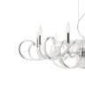 Материал арматуры – металл, цвет – хром. Декоративные рожки из прозрачного стекла. Трендовые обтекаемые формы в дизайне. Высота подвесных люстр регулируется тросом.