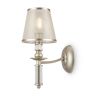 Арматура из металла в двух оттенках: матовое золото и латунь. Абажуры – текстиль на ПВХ бежевого оттенка. Часть абажуров в серии декорирована узорным кантом, часть – атласным кантом в тон арматуре. Торшер с цоколем Е27, лампа, бра и люстры – Е14.