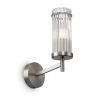 Арматура из металла. Цвет – никель. Плафоны цилиндрической формы выполнены из прозрачных стеклянных трубок. Атмосферная игра света в фактурных гранях. Источник света – лампа с цоколем Е14.