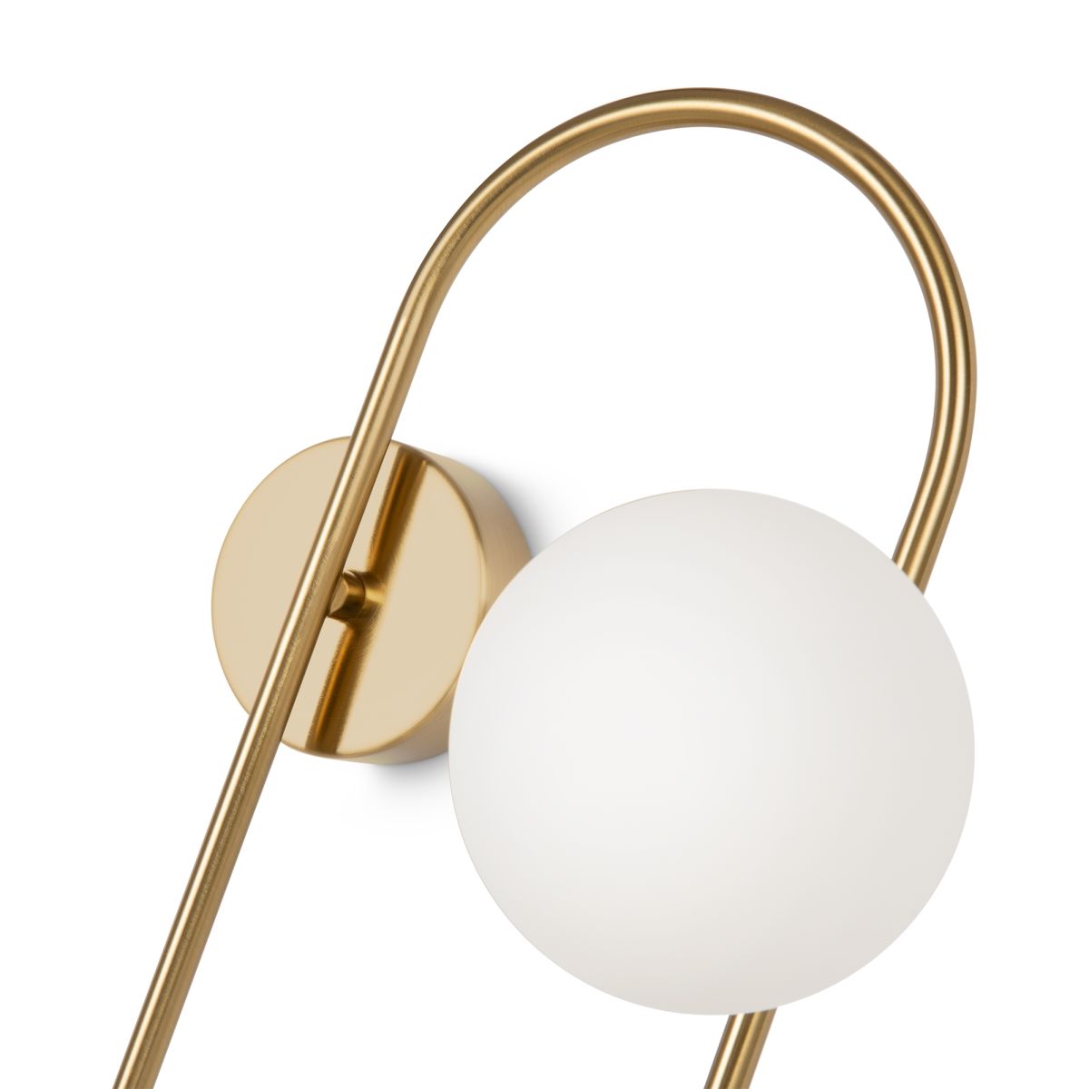 Арматура - металл, цвет - латунь. Стеклянные плафоны-сферы в двух оттенках белый матовый и дымчатый в настенно потолочной версии. Округлые и плавные линии - беспроигрышное сочетание для современных интерьеров. Настенные бра можно использовать как для общего на потолке так и для зонального настенного освещения Источник света - лампа с цоколем G9.