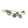 Арматура - металл, цвет - латунь. Стеклянные плафоны-сферы в двух оттенках белый матовый и дымчатый в настенно потолочной версии. Округлые и плавные линии - беспроигрышное сочетание для современных интерьеров. Настенные бра можно использовать как для общего на потолке так и для зонального настенного освещения Источник света - лампа с цоколем G9.