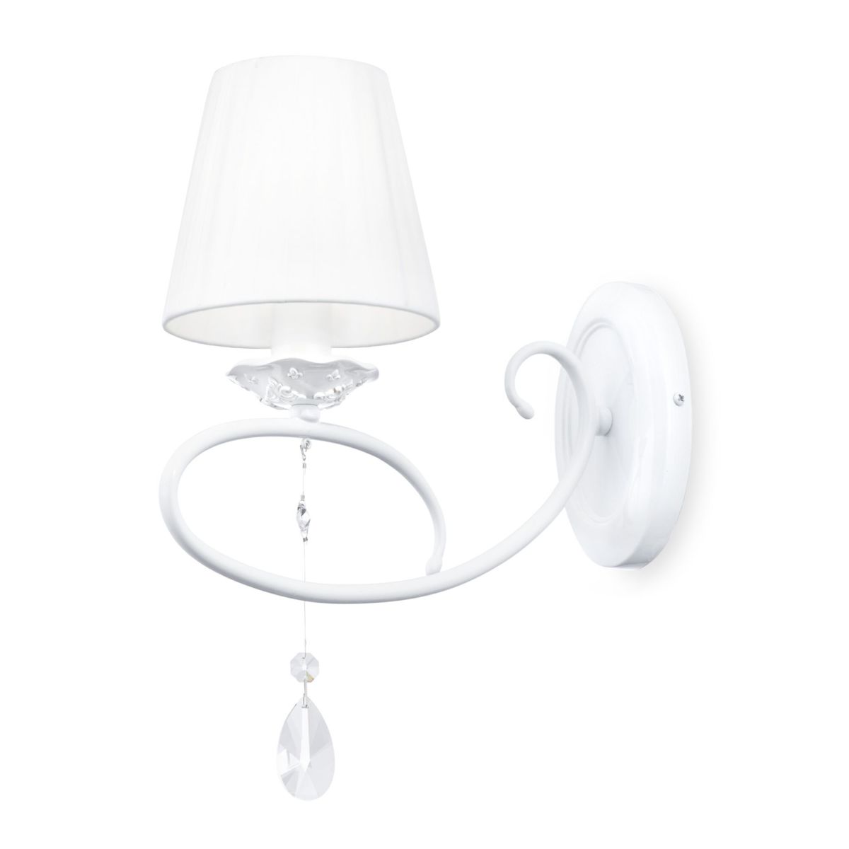 Арматура из металла, цвет – жемчужный белый. Абажуры из плиссированной органзы белого оттенка. Декор – подвески из кристаллов, фигурки птиц. Высота люстр регулируется.