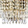 Арматура из металла, цвет – античное золото. Декор металлических элементов – инкрустированный цветочный орнамент. Многоярусные хрустальные подвески скрывают лампы. Часть моделей имеет открытые источники света в виде свечей.