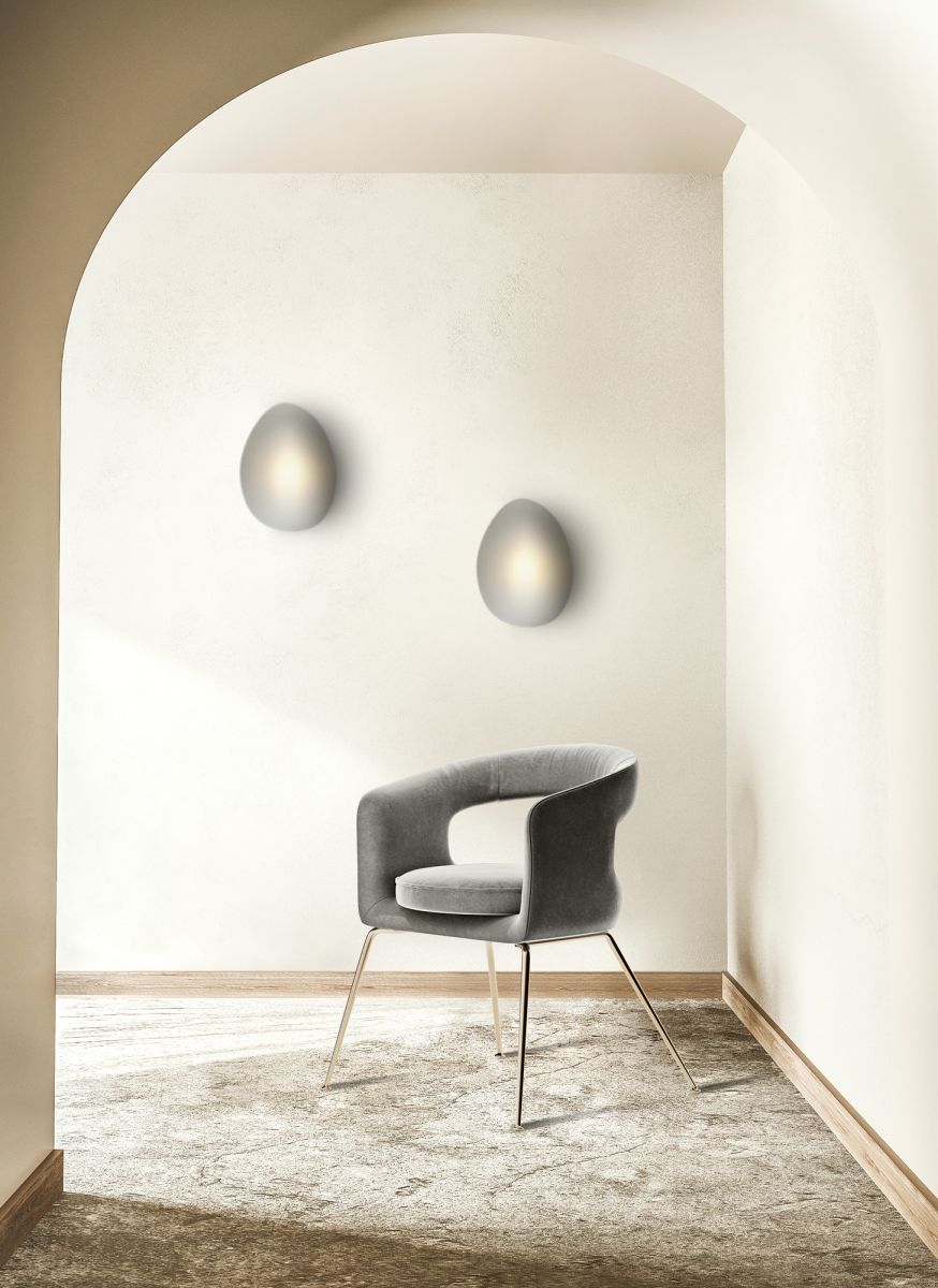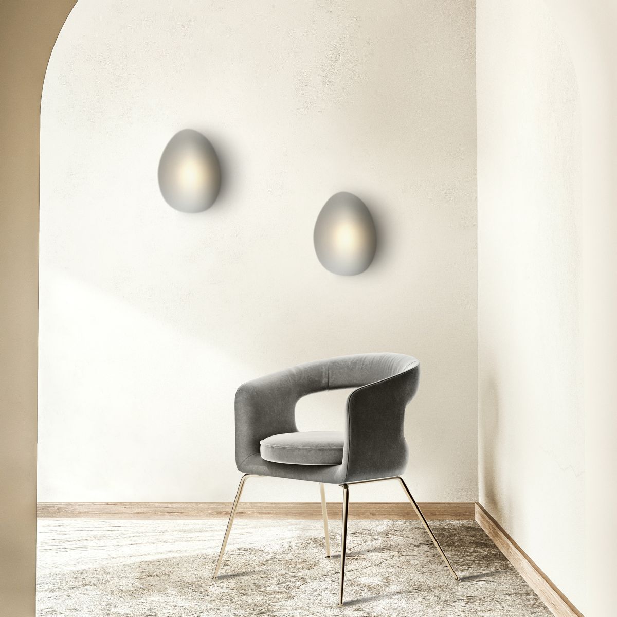 Металлическая арматура белого цвета. Плафоны из выдувного стекла в трех оттенках: матовый белый, матовое серебро, шампань. Кабель подвесов декори рован текстильной оплеткой. Светодиодные источники света с температурой - 3000К.