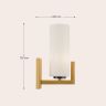 Арматура из металла, оттенок — латунь. Стеклянные плафоны в белом цвете. Часть элементов окрашена в контрастный черный оттенок. Геометрия в дизайне: цилиндрические плафоны, прямоугольные рожки.