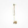 Арматура из металла цвета латуни, материал рассеивателя – текстильный жгут, декоративные элементы выполнены из прозрачного выдувного стекла. LED-источник света. Цветовая температура 3000К, угол рассеивания света 360°. Вертикальное настенное бра включается touch-сенсором. Тканевый шнур. Высота подвесных светильников регулируется.