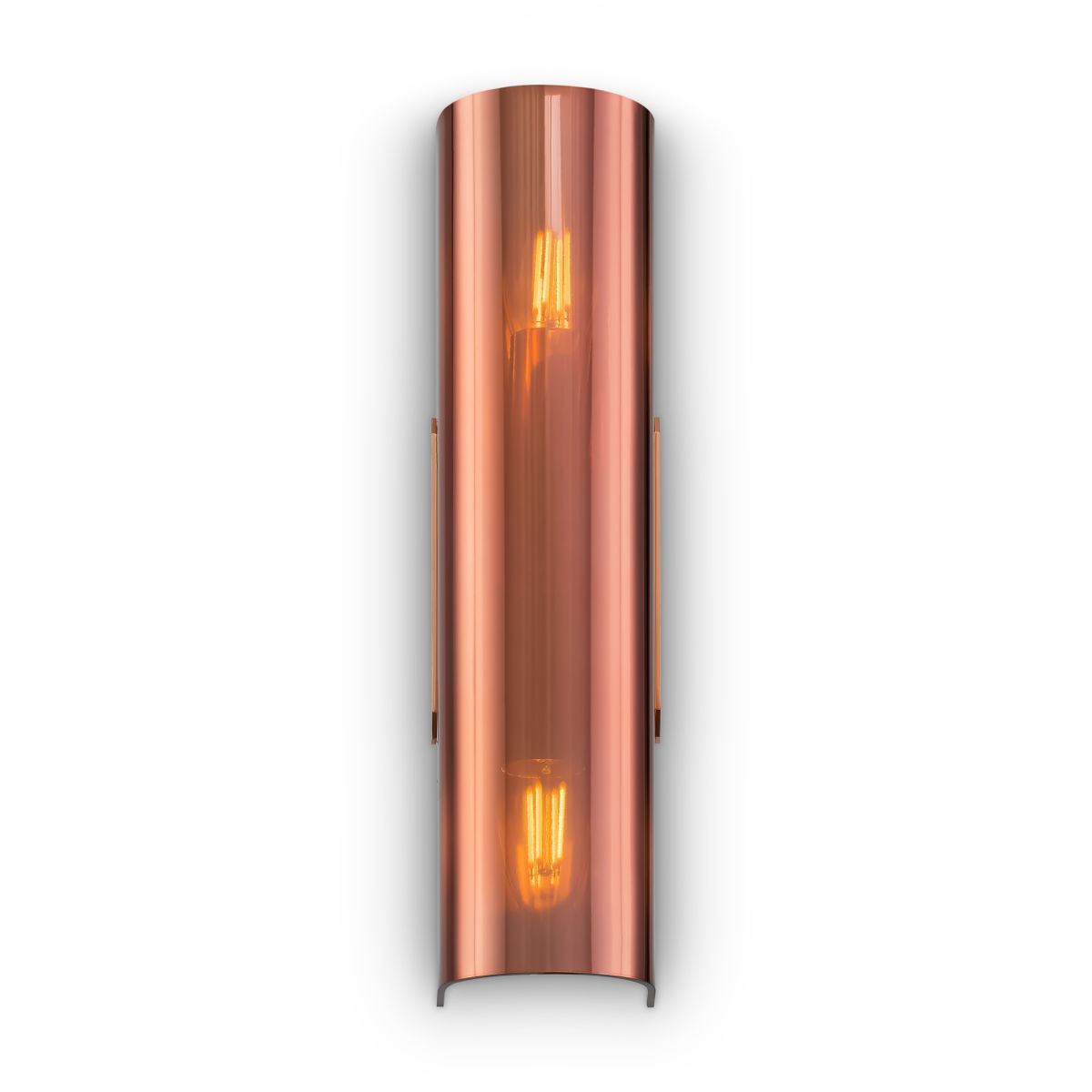 Металлическая арматура в двух оттенках: хром и золото. Плафоны из выдувного стекла гальванизированы в тон арматуре. Углубление в корпусе подвесных моделей скрывает крепление провода. Бра с зеркальным эффектом. Двунаправленный световой поток. Источник света — лампа с цоколем Е14.