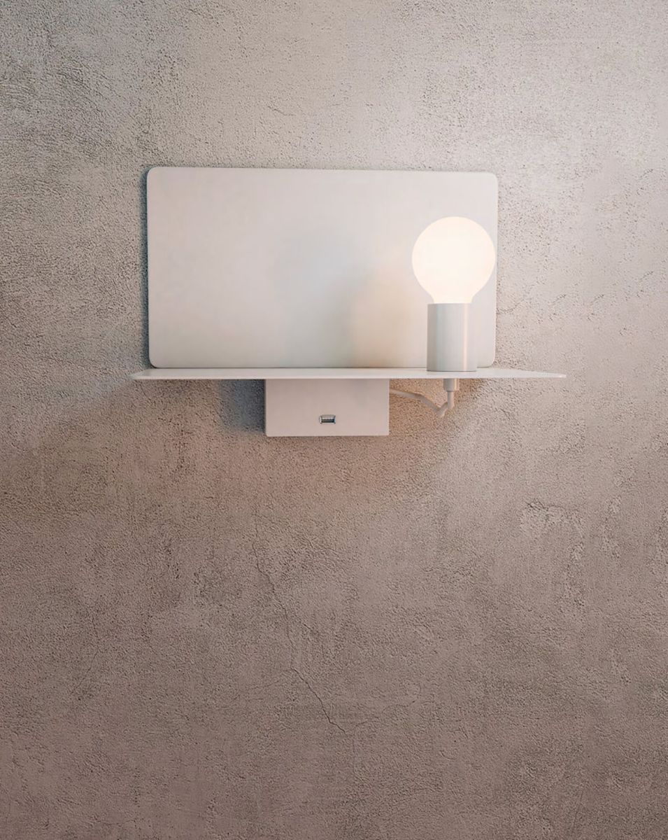 Функционал светильников серии Rack не имеет границ. Лаконичный рациональный дизайн моделей совмещает в себе красоту и комфорт. В конструкцию входит светильник, книжная полка и USB зарядное устройство. Корпус изготовлен из металла с устойчивой к износу порошковой краской черного или белого цвета. Для зрительного комфорта рекомендуется использовать лампы с матовой колбой.