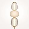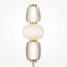 Металлическая арматура, цвет - золото, хром. Микс плафонов округлых и вытянутых форм из белого матового и прозрачного стекла с сетчатым и с линейным повторяющимся рельефным рисунком. Регулируемая высота подвесных моделей, провод - 3 метра. LED-источник света, цветовая температура 3000К.