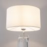 Металлическое основание - дополнено скульптурным литым стеклом в трех оттенках: прозрачном, дымчатом и пудрово-розовом. Хлопковый абажур белого цвета. Цоколь Е27.