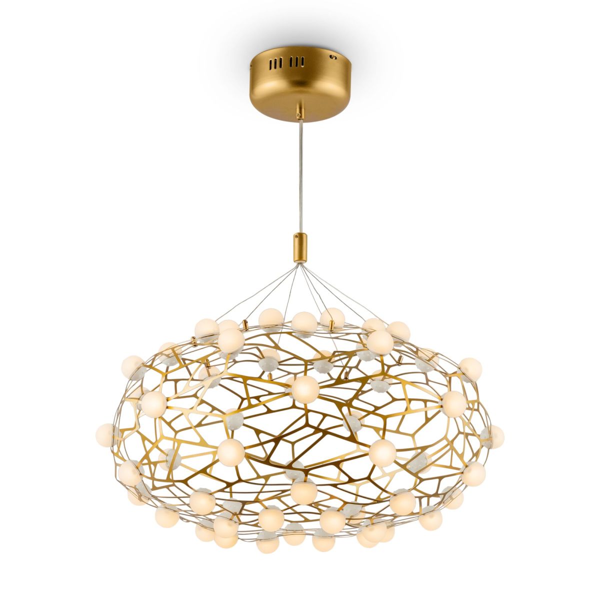 Сегодня, когда форма зачастую оказывается важнее содержания, свет переосмысляется как арт-объект, обретает новые черты и всё более настойчиво отсылает нас к природным мотивам. Серия Sheila – яркое тому подтверждение. Сферическая арматура и сияющие LED-огоньки – отсылка к необъятности, бесконечности Вселенной и гармонии окружающего мира. Филигранный узор и переплетение тонких металлических линий напоминает о традиционной форме мозаики и одновременно о модном молекулярном дизайне. Цвет латуни идеально дополняет миниатюрные матовые плафоны. Современные LED-источники обеспечивают яркую, равномерную подсветку. Две люстры различного диаметра и высоты позволяют выбрать модель, подходящую под параметры помещения.