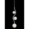 Металлическая арматура представлена в двух оттенках: хром и золото. Белые плафоны-сферы из матового стекла. Каркас оригинальной волнистой формы. Высота подвесных моделей регулируется тросом.