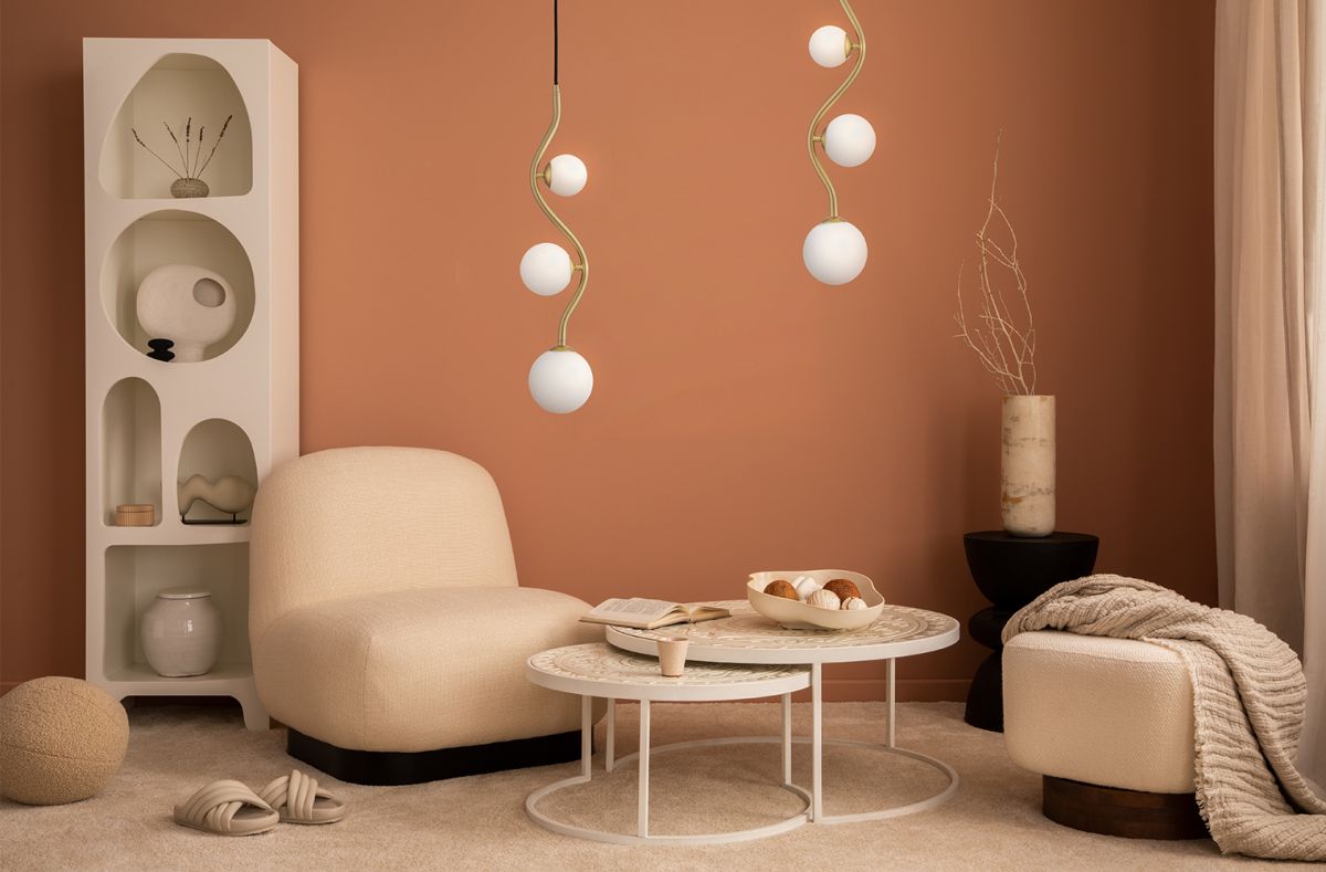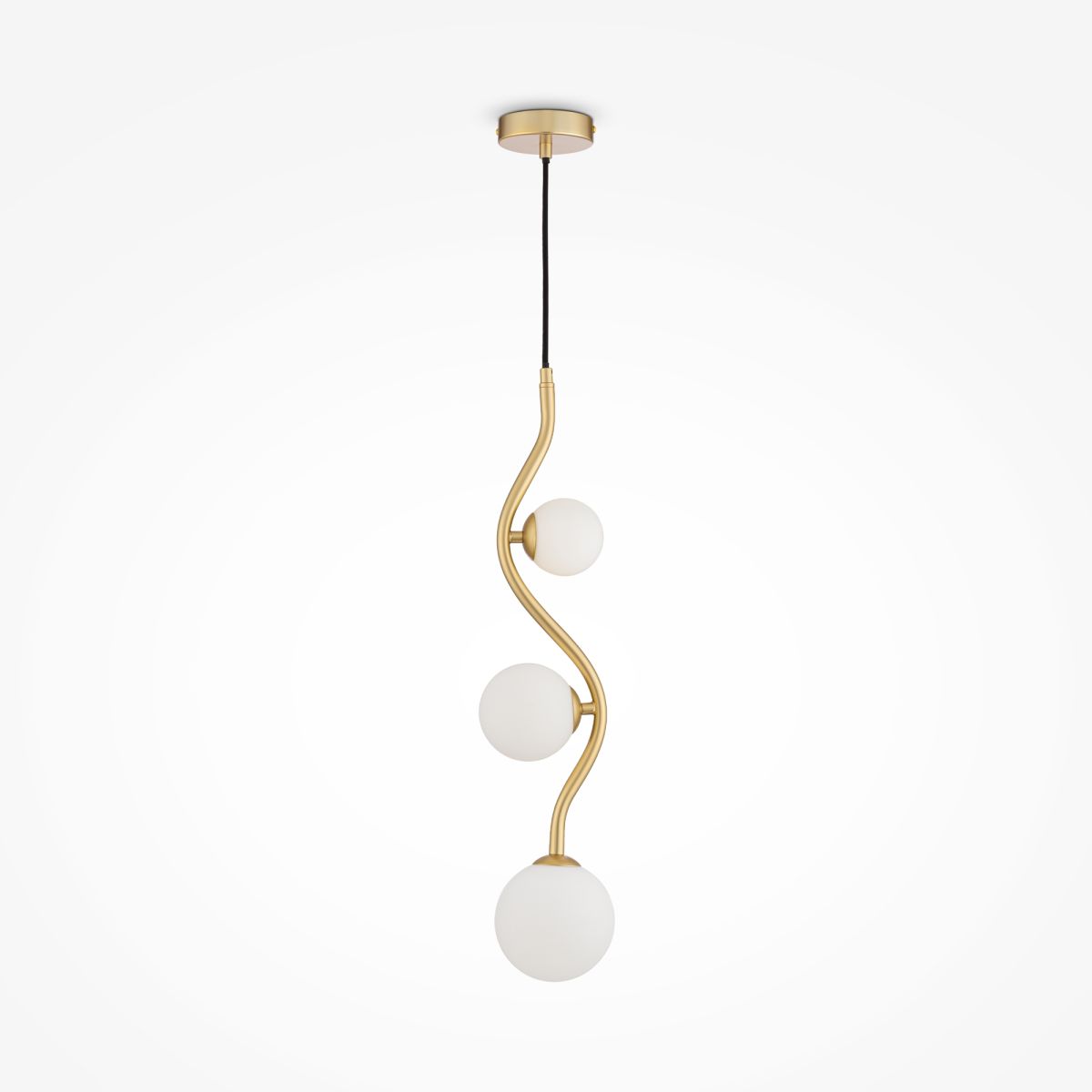 Металлическая арматура представлена в двух оттенках: хром и золото. Белые плафоны-сферы из матового стекла. Каркас оригинальной волнистой формы. Высота подвесных моделей регулируется тросом.