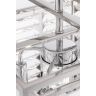 Арматура – металл, оттенки – хром, золото. Двойной геометрический плафон. Металлический каркас плафона окрашен в тон арматуре. Декор – стеклянные кри сталлы с трапециевидной огранкой. Высота подвесных моделей регулируется.