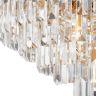 Арматура из металла в трех оттенках: латунь, хром, золото. Многоярусный декор. Подвески: прозрачное (арматура – хром, латунь) и янтарное (арматура – золото) стекло. Высота подвесных моделей регулируется.