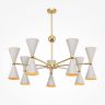 Материал арматуры - металл, оттенок – золото. Металлические плафоны изнутри окрашены в золотой цвет. Внешняя сторона в двух вариантах оттенков: черный и белый. Поворотный механизм, рожки вращаются.