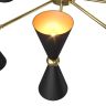 Материал арматуры - металл, оттенок – золото. Металлические плафоны изнутри окрашены в золотой цвет. Внешняя сторона в двух вариантах оттенков: черный и белый. Поворотный механизм, рожки вращаются.
