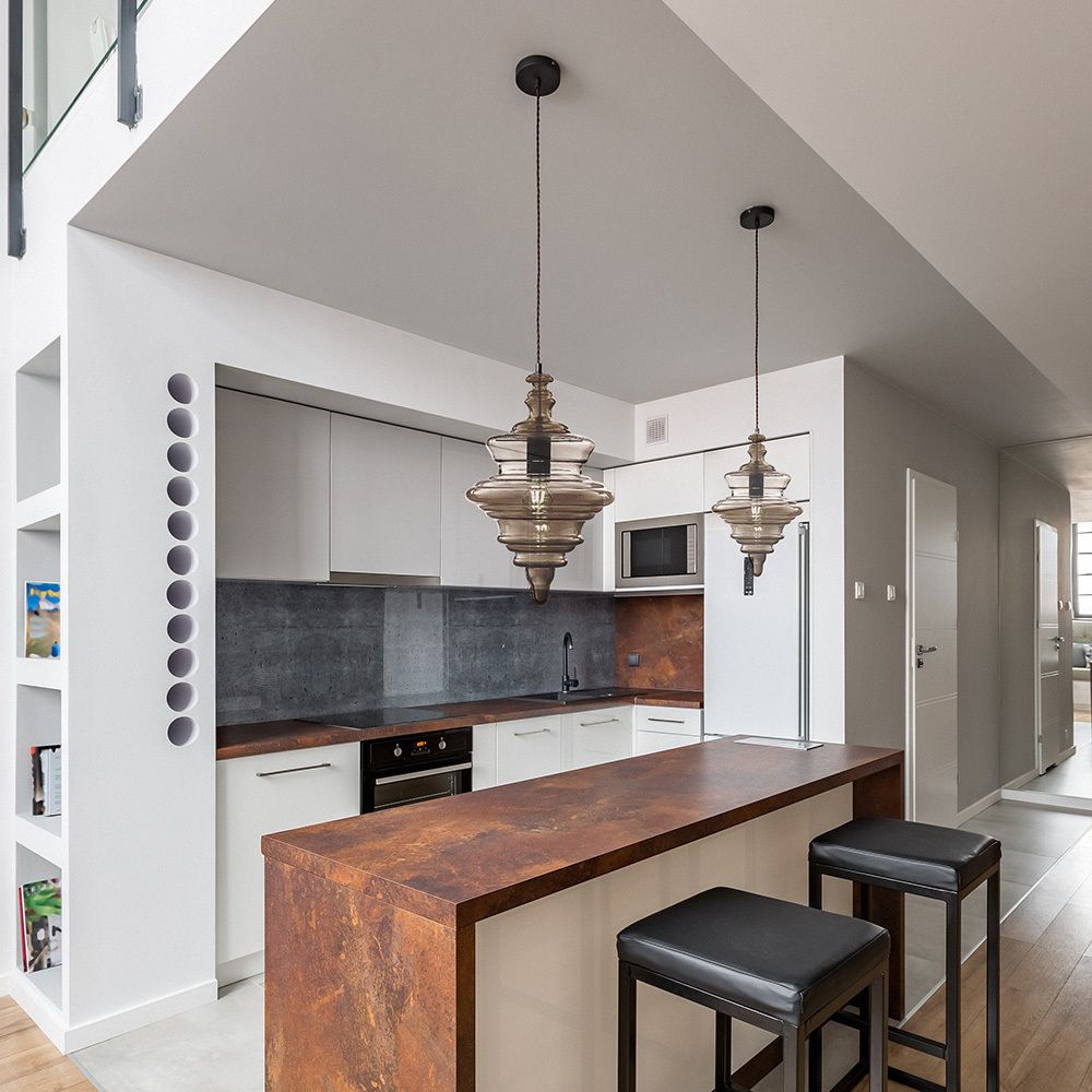 Металлическая арматура в 3 оттенках: матовый белый, матовый черный и латунь. Стеклянный плафон также представлен в 3 цветах: прозрачный, дымчатый, янтар ный. Винтажная форма плафона. Регулируемая в