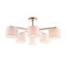 Арматура – металл + стекло, цвет - золото. Универсальные тканевые абажуры в белом цвете. Декоративные элементы из прозрачного рельефного стекла. Источник света - лампа с цоколем Е27.
