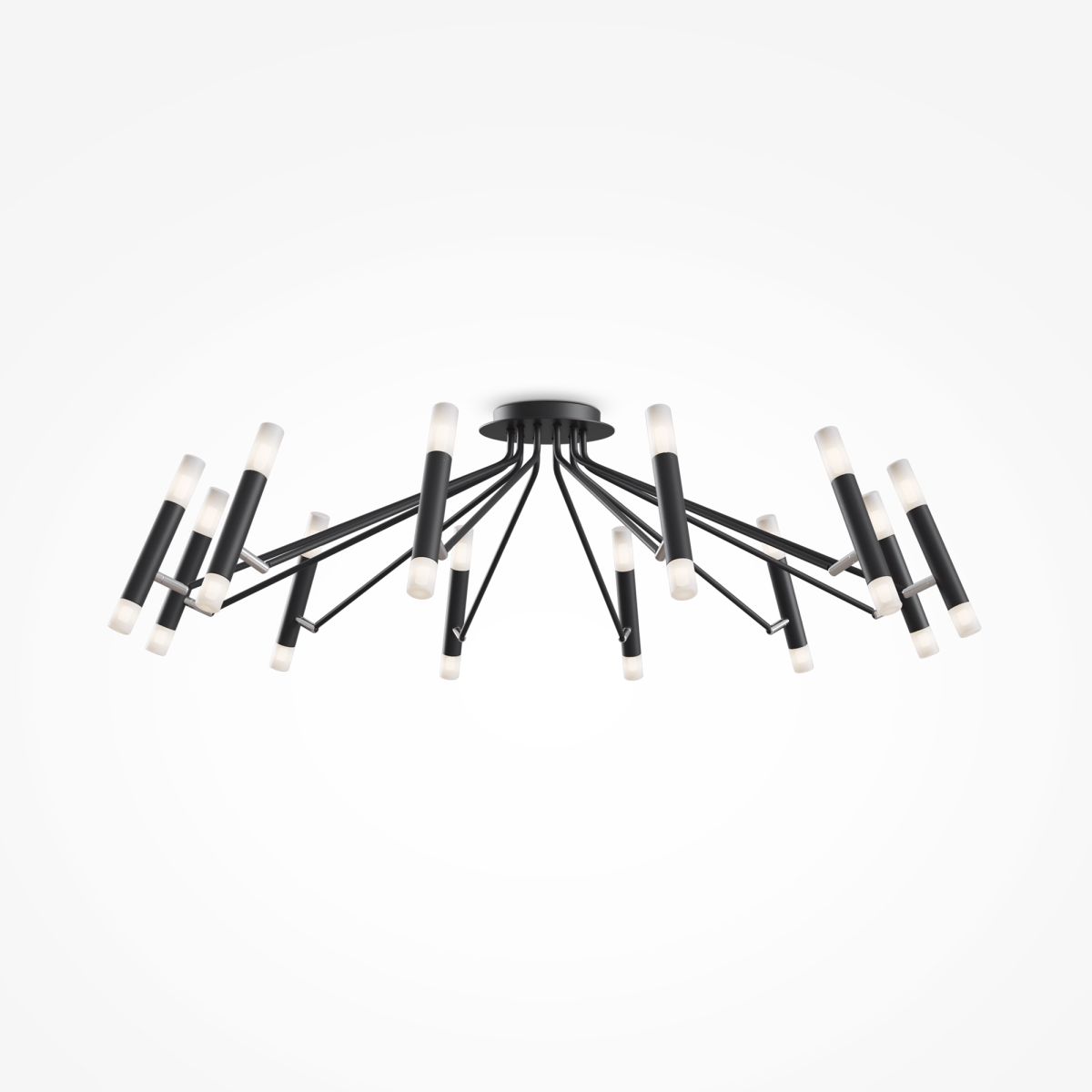 Металлическая арматура в матовом черном цвете. Цилиндрические плафоны вра щаются на 340° по горизонтали и 90° по вертикали. Возможность видоизменять дизайн светильника. Рассеиватель из матового стекла.
