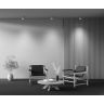 Материал корпуса – металл; цвет – белый, чёрный и золотой. Форма корпуса – стаканчик. Акриловый рассеиватель. Сияющий эффект при свечении. Отсутствие стопорного кольца. Утопленный источник света – лампа GU10.