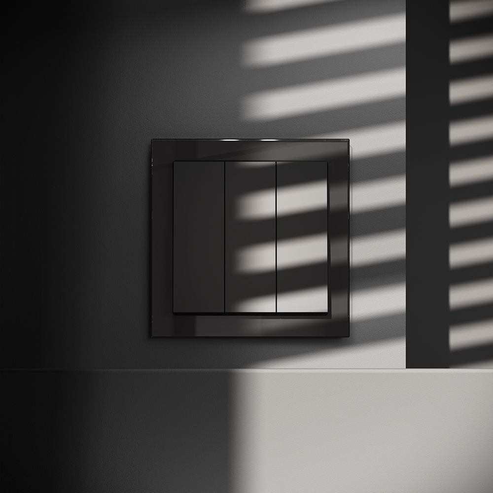 Выключатель встраиваемый VOLTUM S70 трехклавишный 10А, (черный матовый)